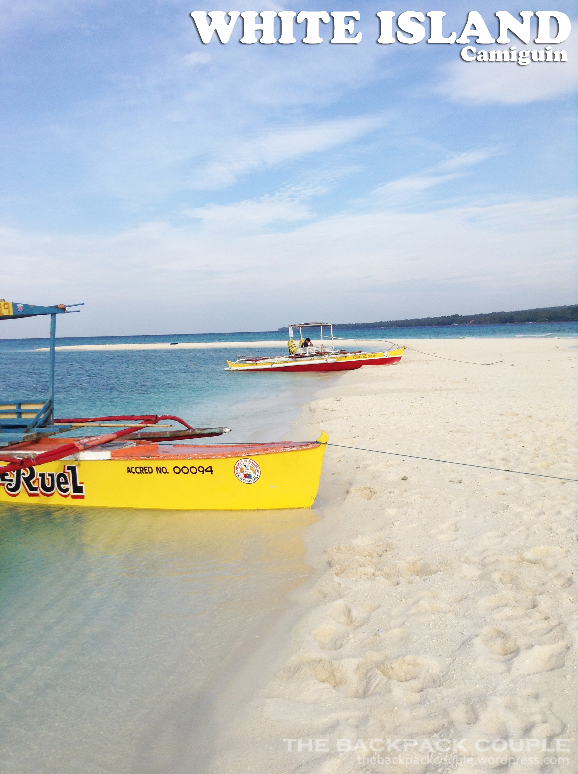 White Island. Perhaps the most popular tourist site of Camiguin, this small patch of pure white and shinny coral sand off the coast of Mambajao town is an eye catcher and truly a splendid gift of nature. It offers a magnificent tropical panoramic view with Mt. Hibok-Hibok and Mt Vulcan in the background. It is only 15 minutes by motorized banca from its jump-off point, beside Paras Resort.