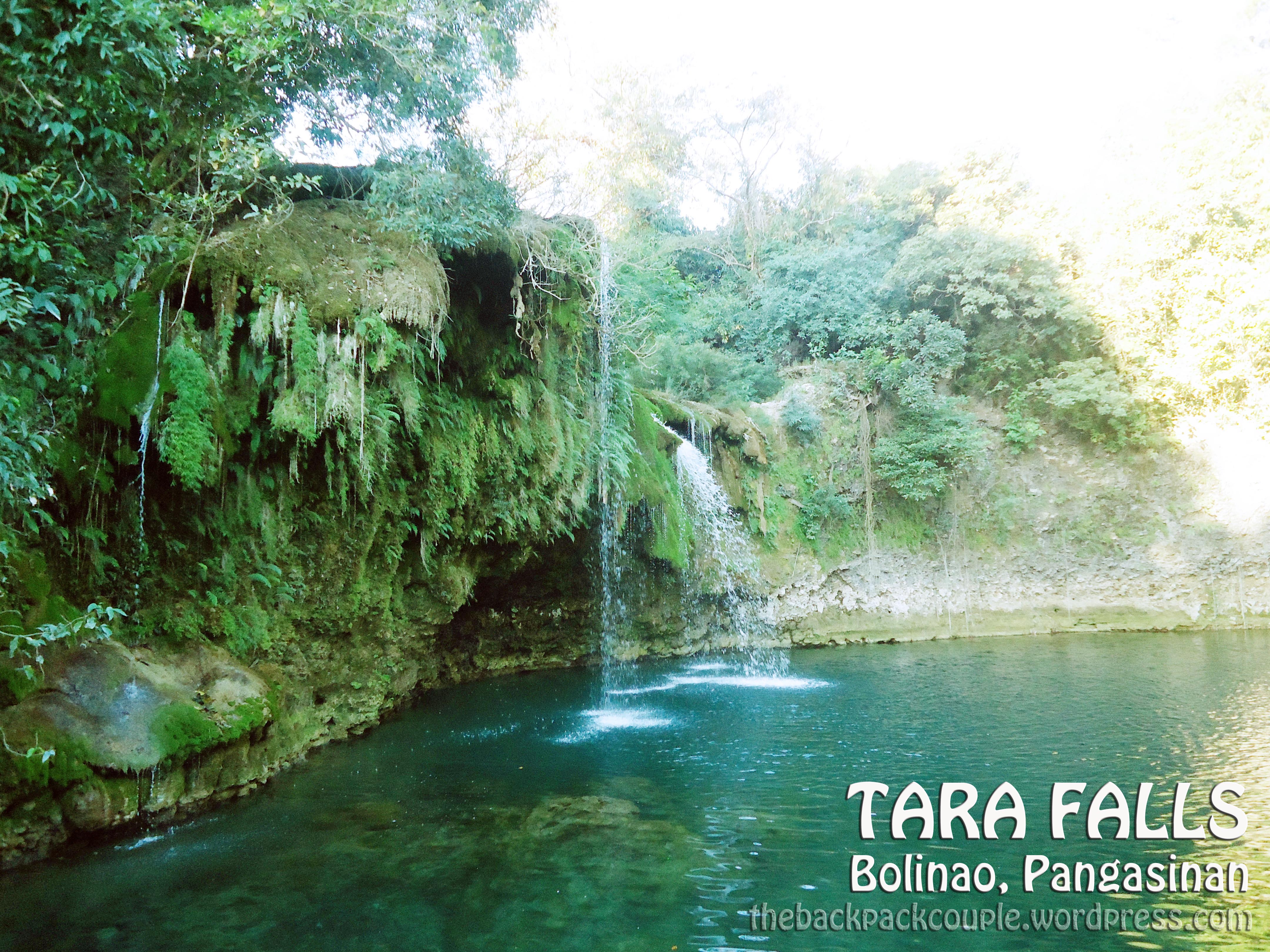 Tara Falls. This is located in the interior part of Bolinao, which will take you about 30 minutes by vehicle through unpaved roads and brief trek down to the falls.  Unfortunately, during our visit and especially during summer, the falls seems to dry up a bit, hence the small volume of  flowing water.  Also, the catchment seemed to have clogged-up rendering the water to stagnate and creating a pool of algae and mosses.