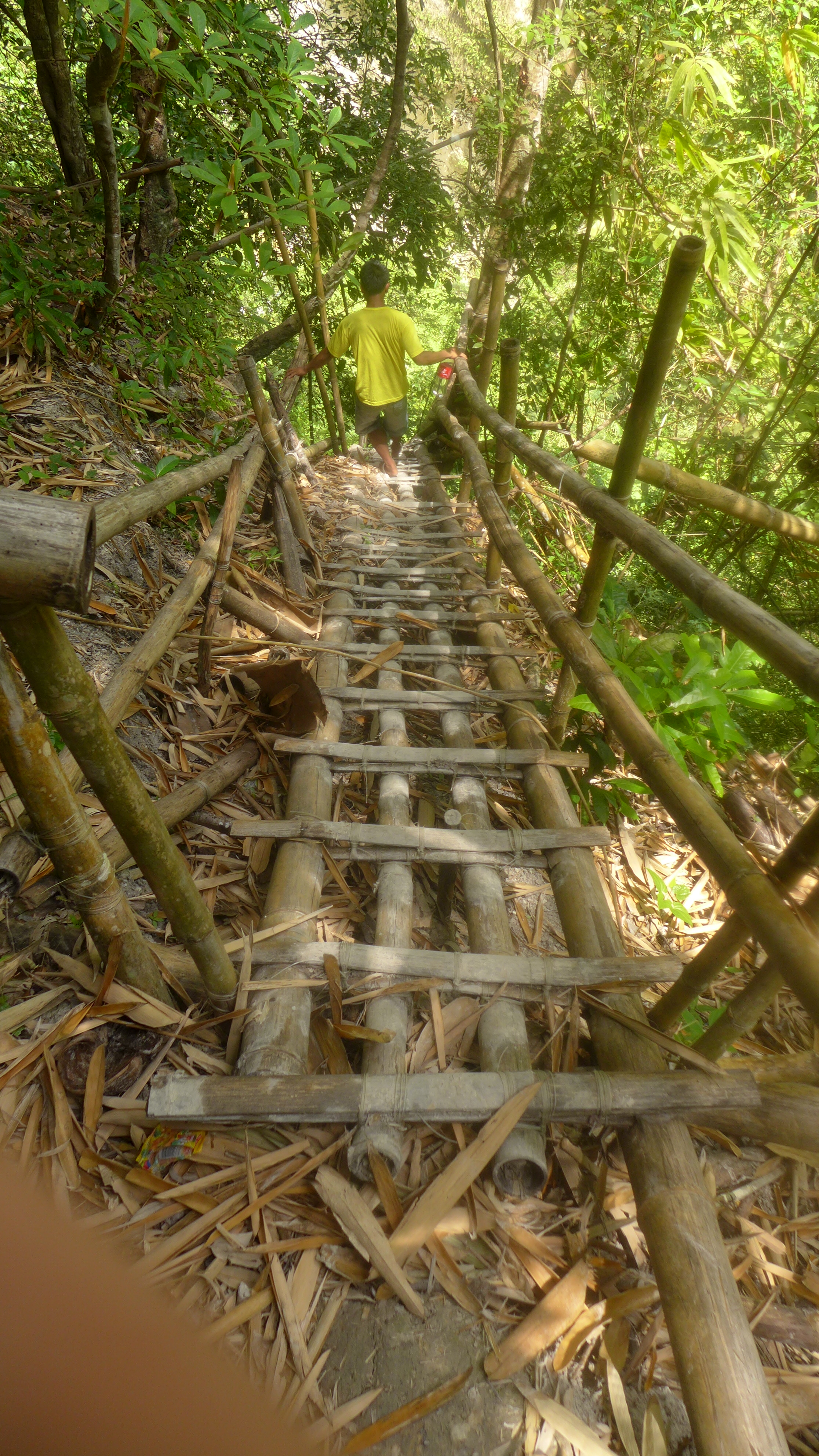 Halfway through, Ive has decided not to pursue anymore and after some rest, I’m back on feet to have a glimpse of Da-o. After another 15 minutes, we can already hear the sound of the falls, and I was advised by the guides of the looming challenge of going down the falls. true enough, it was a buwis-buhay (death-defying) experience to climb down an ageing 30 meters makeshift stairs.