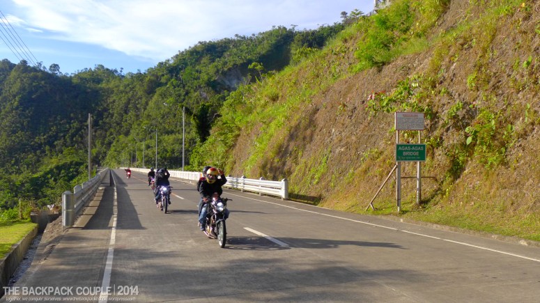 After two hours of being in the road, we finally arrived at the mighty Agas-Agas Bridge. Being on top of the bridge was really an exciting experience. To our right was a sheer drop overlooking a deep ravine, and to our left was an ominous mountainside covered by lush trees and vegetation.