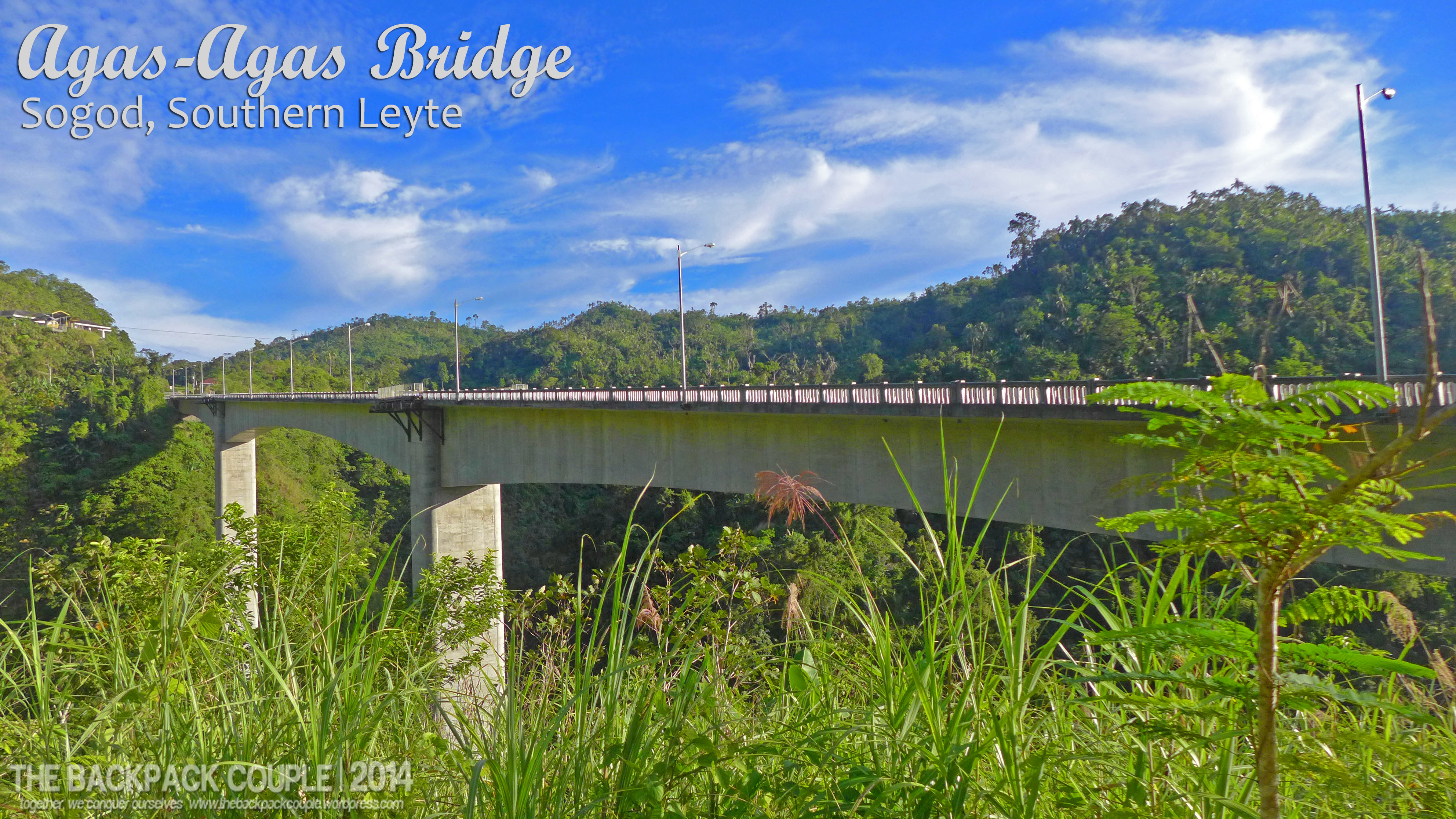 The bridge is situated in Brgy. Kahupian, Sogod town in the province of Southern Leyte, along the boundary of Leyte Province. Agas-Agas Bridge was built in 2006 to allow the safe and quick passage of vehicles traveling from Visayas to Mindanao along the Pan-Philippine/Maharlika Highway.