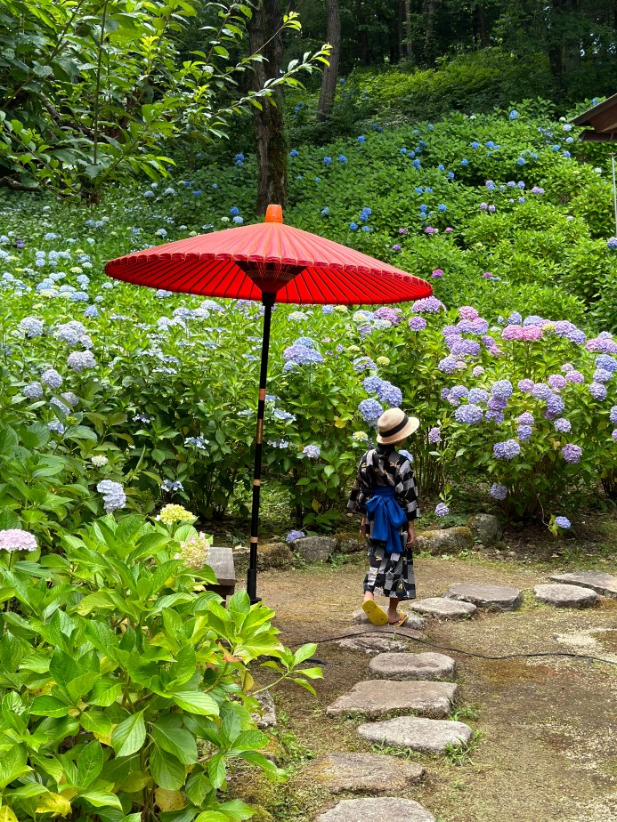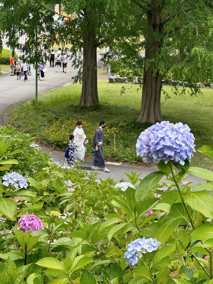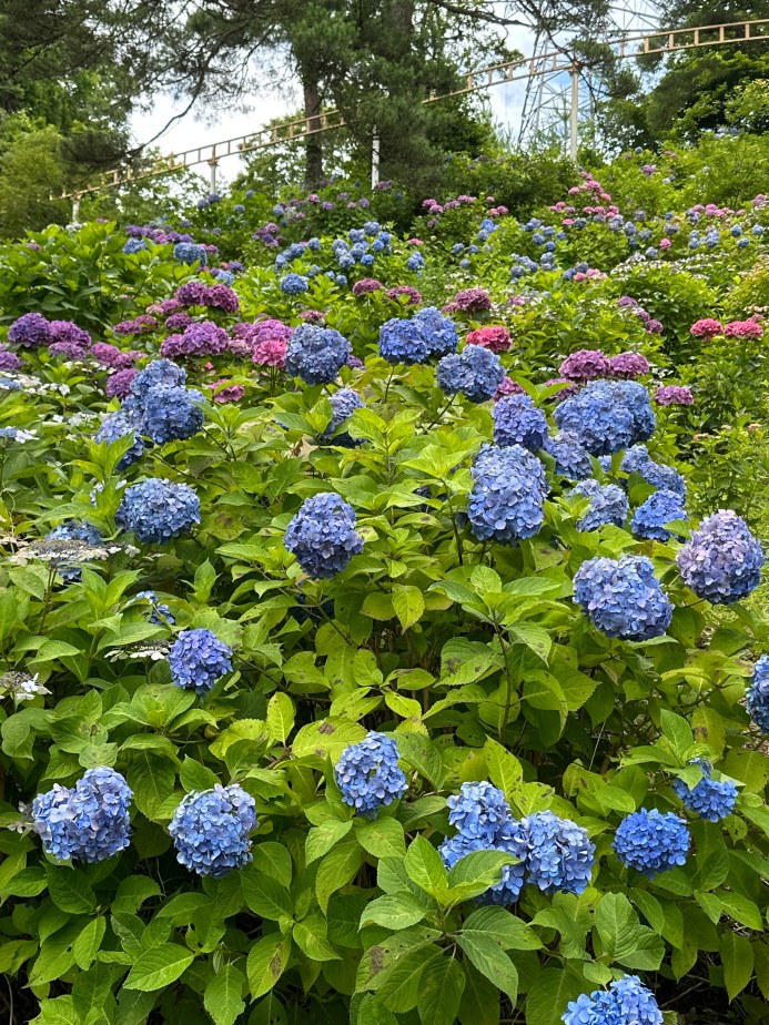 In Toyama Prefecture, off the Sea of Japan and right under the Tatetayama alpine peaks, a popular hydrangea attraction is located within Taikoyama Land in Imizu City. This huge prefectural park is home to over 20,000 ajisai flowers strategically planted around the park turning it into a month-long attraction. Truly it’s a colorful sight to behold.